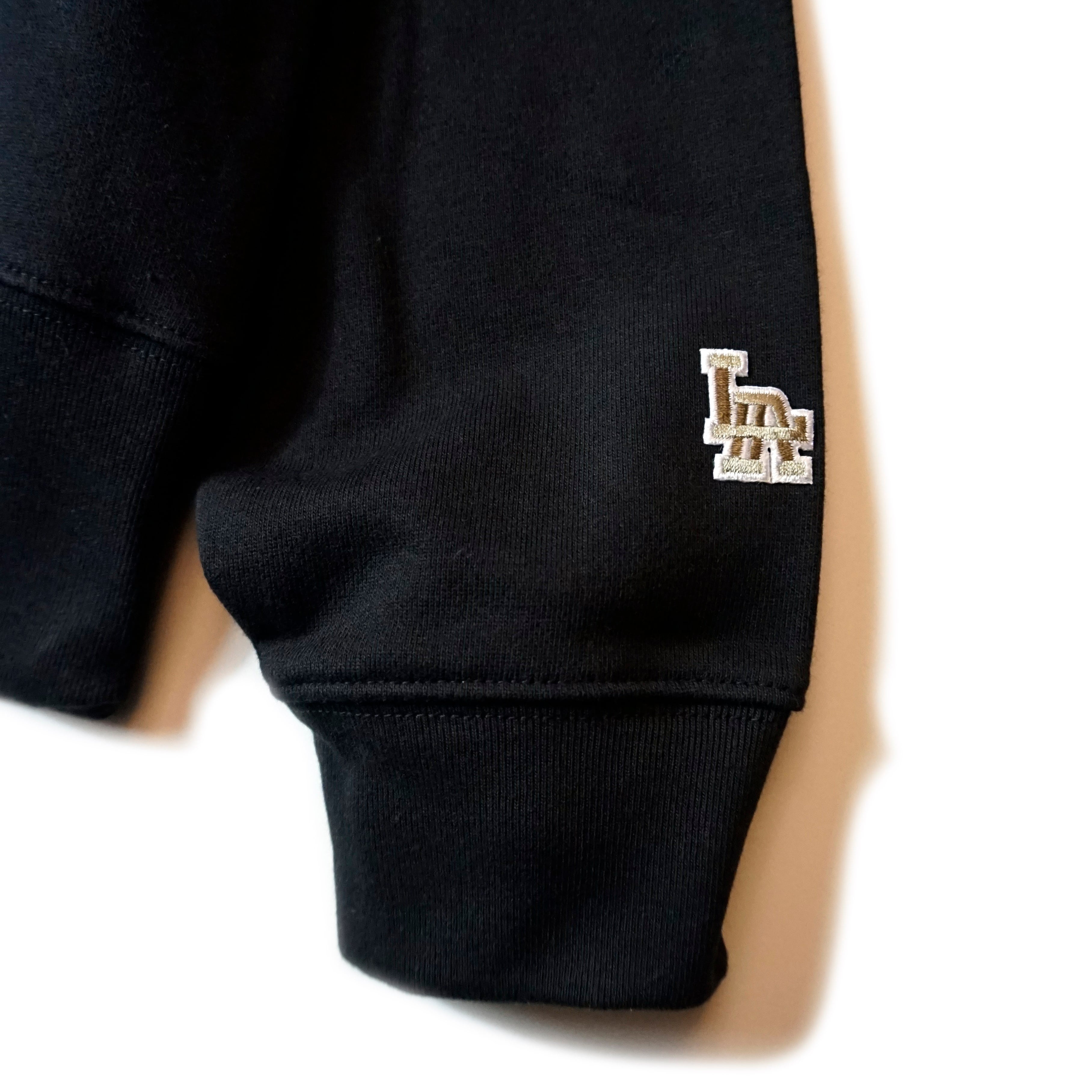 FRONTにはカレッジロゴプリント、袖口にはワンポイントワッペンを施しました。